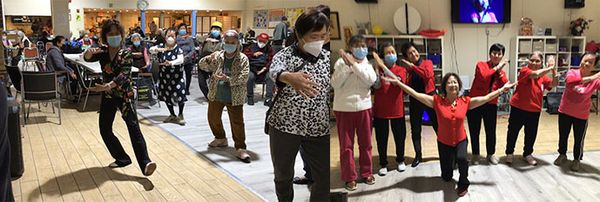 左:老人中心太极操活动 右:老人中心舞蹈活动