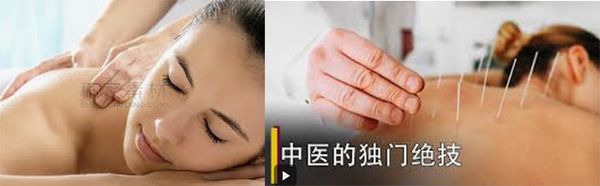 左:按摩防治疾病图 右:中医针灸治疗图