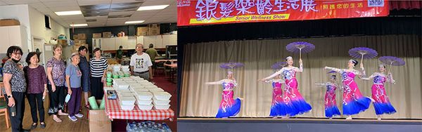 左:参加中国女中校友会庆中秋活动 右:参加社区华侨团体活动