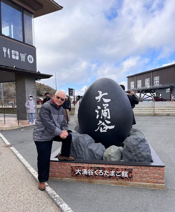 另一个奇观是大涌谷(Owakudani), 是箱根町(Hokone) 的旅游胜地。这里是火山活动末期里的一次大喷发所形成的遗迹,至今仍不断地有地下喷出大量水蒸气和火山瓦斯,周围空气中也弥漫着火山特有的硫磺味。大量硫磺蒸汽不断地喷出,雾气腾腾,将泉水烧得滚烫。大涌谷的特色名物是黑鸡蛋,是由温泉水煮熟因硫磺呈黑色。在日本传说中吃一枚即可延寿7年。大量游客慕名而来大排长龙,求得一尝为快。