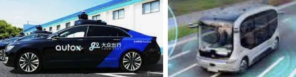 左:中国制造无人驾驶智能小车, 右:中国制造无人驾驶智能客车