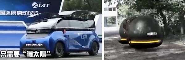 左:中国太阳能汽车, 右:中国磁悬浮小车