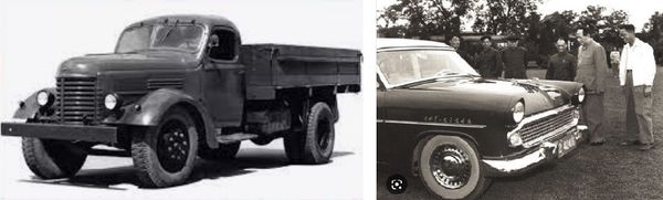 左:解放牌卡车(1956), 右:红旗牌轿车(1958)