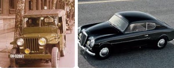 左:四十年代美国吉普车 右:四十年代英国小轿车。