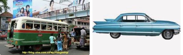 左:五十年代仰光客运巴士, 右:六十年代缅军高官坐驾