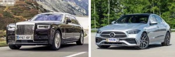左:劳斯莱斯(英国), 右:奔驰汽车(德国)