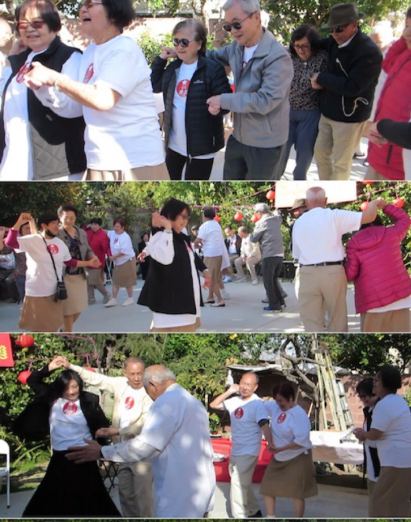 2023年2月11日下午,张会长家的后院树木青葱,花果满园,蓝天白云,空气清爽。在《洛杉矶华友贺母校百年华诞》的牌匾下,数十个亮眼的华中红色校徽在缓缓挪动,那是一群穿起校服的老学生,他们快乐地游荡在“华中”小校园里,热情地互相问候,忙着拍照,尽情地高唱校歌,欢快地跳起怀旧集体舞…….,没有乐队,没有麦克风,靠着大家的喉咙和肢体的活动,却显得有声有色生气勃勃,这是缘自大家对母校的热爱,发自内心的自然感情。