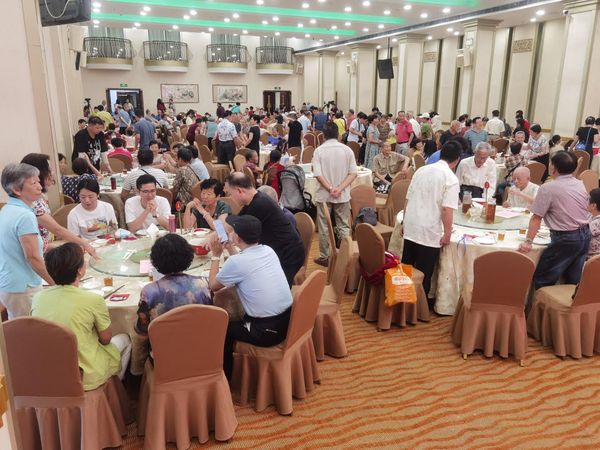 聚餐开始之际,老会长陈汀阳和新会长胡纵横上台以茶代酒敬贺,祝福胞波们中秋快乐、阖家幸福,祝愿祖国繁荣昌盛、山河无恙、国泰民安。
