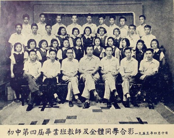 (三)一九五九年四月华夏中学初中第十届长虹毕业班全体师生照。照片内有叶鲁校长,苏春美,黄一帆,刘浩沛,戚铁沛等老师。黄月琴,陈彩意,黄玉清,曹銮丝,梁碧翠,林惠兰,苏焕治,陈锦祥,雷振贤,温政庆,陈国荣,胡克生,郭瓦生,李巾英等同学。
