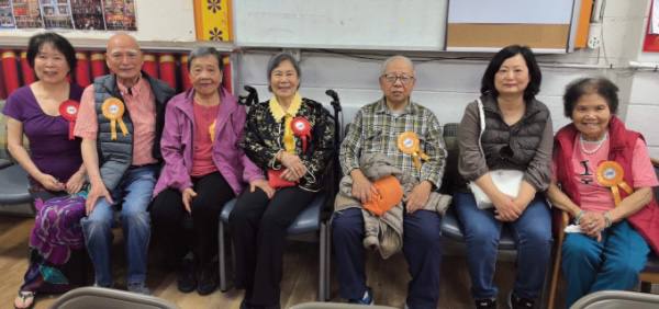 轮到画脸比赛登场,五位寿星给五个年轻人脸部化妆,以观众掌声多者获胜,结果朱徐佳,许秉正和三藩市来的简瑞贞获奖。