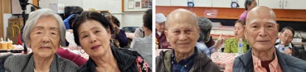图左:左边为女寿星谢玉娥101岁,图右:左边为男寿星苏春美96岁