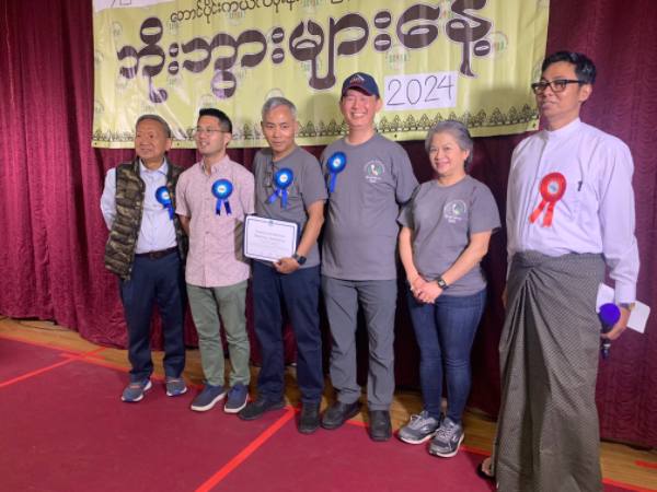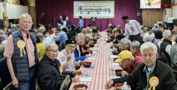 2024-4-21日洛杉矶缅甸会假借缅华会会所隆重举行泼水节敬老活动,当日上午万里无云,微风轻拂,前来参加敬老活动的寿星们,有的健步自行,有的拄着拐杖坐着轮椅,有的儿孙掺扶,高高兴兴,步入礼堂,一排排桌椅整齐排列,全部给75岁以上寿星们坐满,可谓座无虚席。