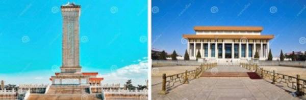 左"人民英雄纪念碑,右:毛主席纪念馆