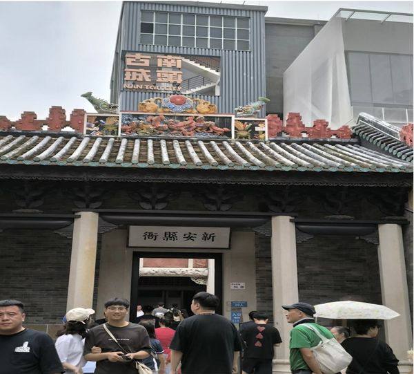 由南头古城的南门進入,沿着直行的主要街道观光,约有二、三公里長,街道兩旁的各种各样的店舖, 经过装修活化成了现代化的商业区,吸引了不少游客的光临,人头涌涌,熙熙攘攘。走马观花也要花上二小時才能走完整段。