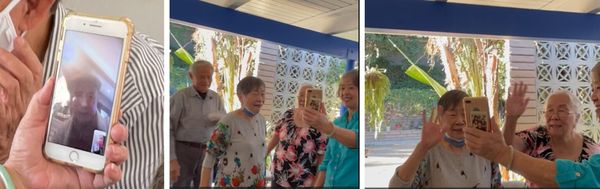 我们也对着手机一起谢谢郭忠信,并祝他身体健康,期望日后相聚。