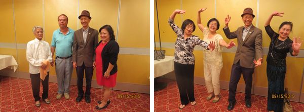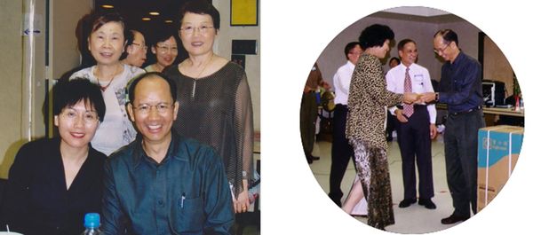 左: 和葉锦华老师合照,右:和三位1960年的访华代表张秋玲,朱雪璋,林碧月共舞