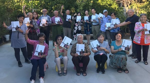 大家一起手捧特刊对着镜头齐喊:“谢谢郭忠信,谢谢仰光华友编辑组!