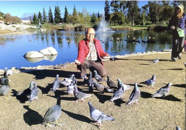 过去我们住在橙县的时候,家里有小蟑螂,需要用药物消灭,也有鸽子常来到访,需要摆草窝让母鸽下蛋孵小鸽。我们现居街子短,鸽子不来,可是距我家咫尺之远的公园里,有草场,跑道,不少健身运动设备,涼亭,池塘等,许多大人小孩常去散步,有人还带去食物喂鸽子,池塘边有大雁蹒步,池塘里有小水鸟沉浮,有乌黾游来游去,常见有人喂食物。