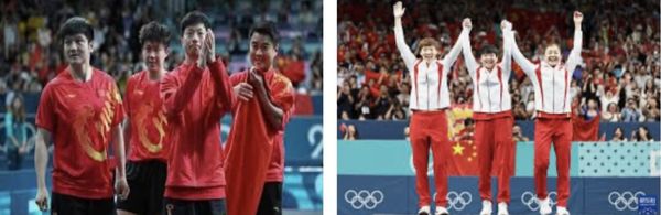 中国男子乒乓球团体冠军。 右:中国女子乒乓球团体冠军