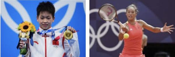 左:中国女子跳水冠军全红婵。 右:中国女子网球冠军郑钦文