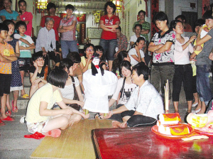 有关“篮仔姑”的传说,可以从那首歌仔的内容中了解一二。至于请“篮仔姑”的游戏,有人深信不疑,觉得很神奇。也有人认为只是心理作用,并不可信,信或不信就看你自己了。不过大家一起玩玩,图个热闹开心,也不必太认真。