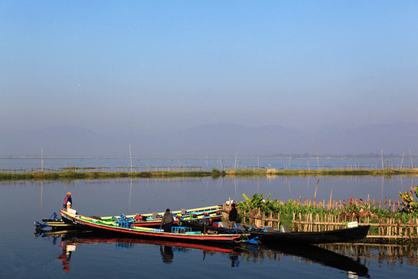 茵莱湖的主要交通工具就是彩色的木船。运输、载客都靠它