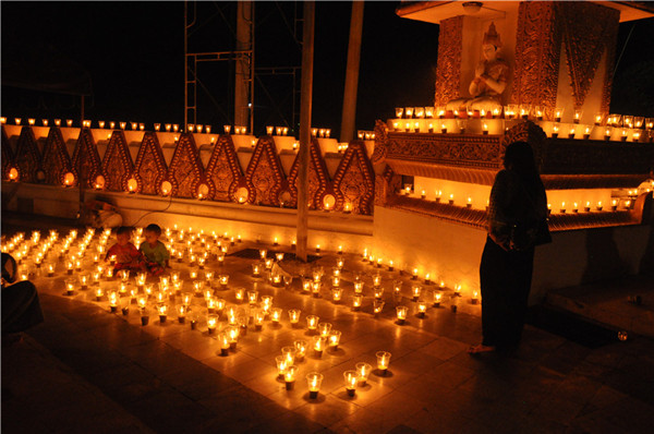 缅甸传统佳节“点灯节”,灯火辉煌 ,灯光的贡献主要来自与蜡烛或油灯。