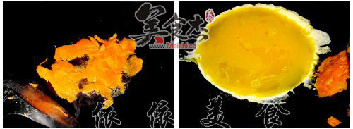 鸡蛋先磕进大碗,加入2滴酒和一点盐搅拌均匀,把胡萝卜片拨到锅边,倒进鸡蛋液