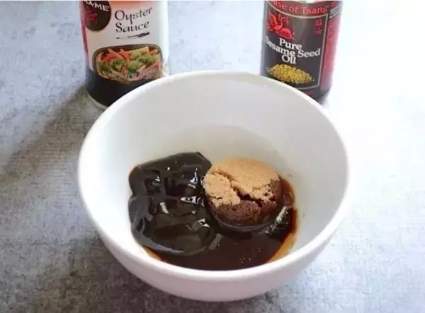 1.准备好拌酱,把蚝油倒入碗里,加少许花生粉增加口感与香味。