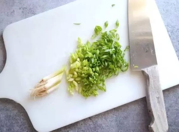 2.洗干净买来的小葱,去头去根,剁成小葱花。