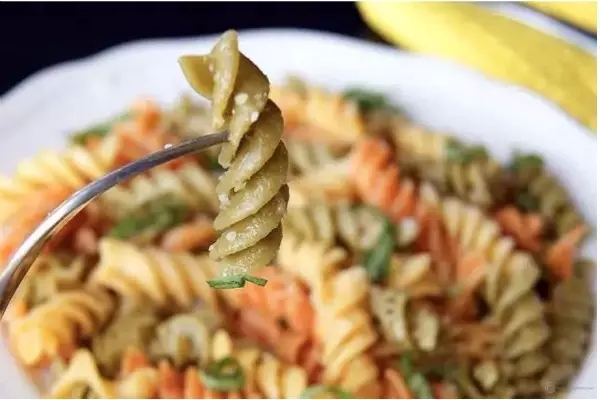 1、由玉米、菠菜、胡萝卜做成的三色通心粉,比普通的更低热量,多吃点杂粮,对身体更好哟~