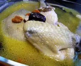 材料:老母鸡(油鸡)(1只)、姜片(少许)、水(适量)、盐(适量)、枸杞、红枣、香葱(适量(也可不加))