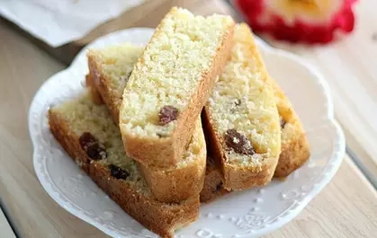 面粉80g、鸡蛋4个、葡萄干30g、色拉油适量 、盐适量、牛奶8勺 酵母5g、白糖50g