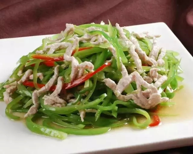 材料:青椒150克,里脊肉200克,植物油50毫升,酱油5毫升,料酒3毫升,盐2克,淀粉3克,味精少许,水或鲜汤30毫升。