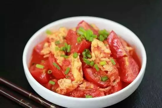 5.炒锅内重新倒入少许油烧至7成热,倒入西红柿大火煸炒,然后加入白糖炒匀,再倒入鸡蛋一起翻炒,最后调入少许盐和味精,起锅前撒上葱花即可。
