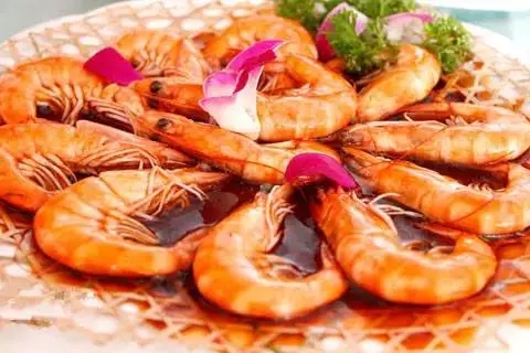材料:海虾1斤,姜丝一小把(宜多不宜少),白糖2大匙,盐1小匙,番茄酱2大匙,橄榄油。