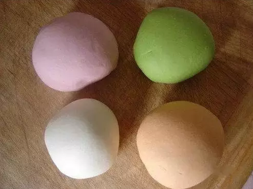 1先按上文所说的方法,把几种纯色的面团都和好: