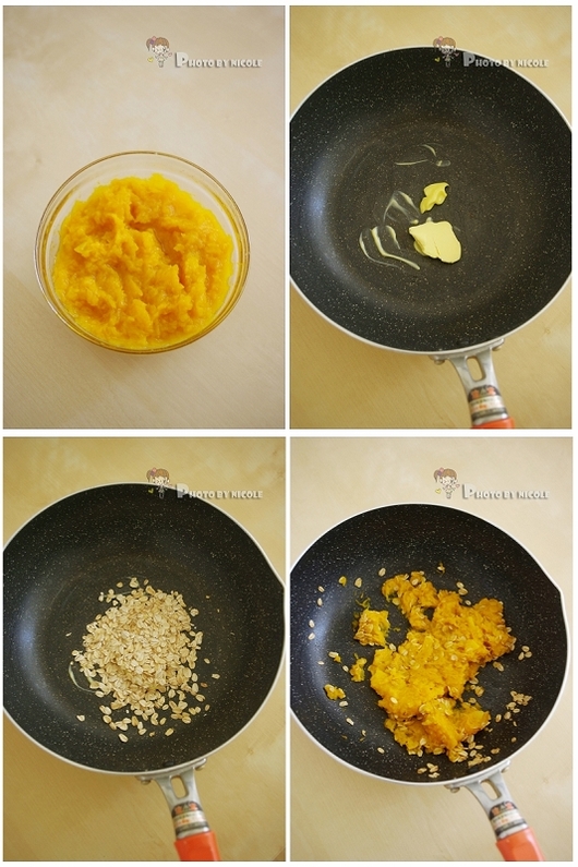 4. 放入南瓜泥,翻炒均匀;