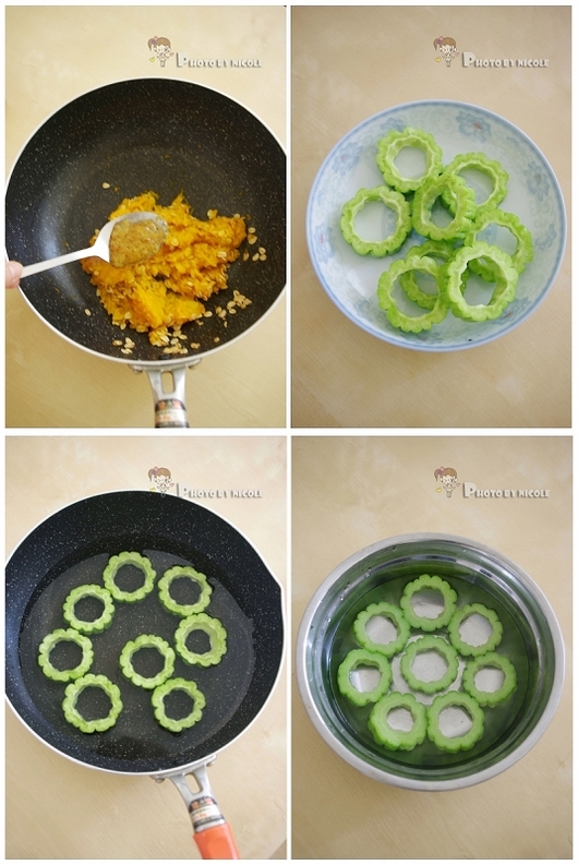 6. 苦瓜洗净,切片,挖去内芯;