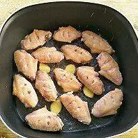 2. 锅中倒入油,下姜片、鸡翅