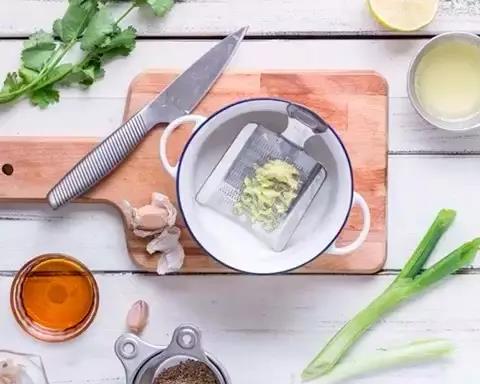 ❹ 蒜泥姜泥,酱油,香油,糖,青柠汁,醋混合均匀后兑成拌面汁儿。