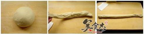 2.将面团用手揉几分钟,滚成圆条拉长