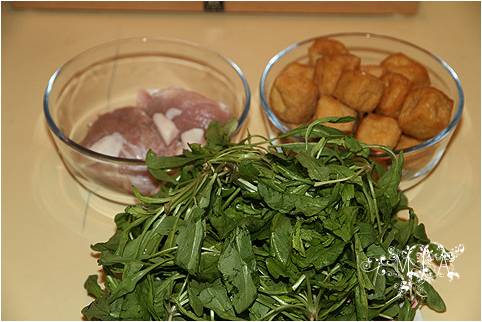 原料:肉糜 油豆腐 荠菜 鸡蛋