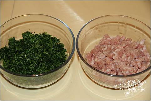 1. 可以放入的馅料有很多种,我家大厨用的是包馄饨的剩余馅料。