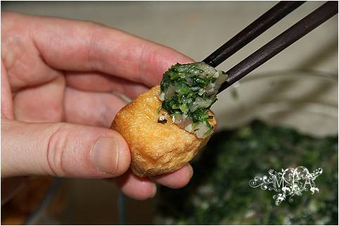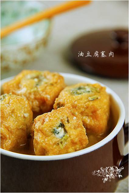 肉菜馅外包裹着喷香的油豆腐,是一道具有双重味道的美食哦。