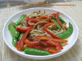 金针菇能有效地增强机体的生物活性,促进体内新陈代谢,有利于食物中各种营养素的吸收和利用,对生长发育也大有益处,因而有“增智菇”、“一休菇”的美称; 荷兰豆具有和中下气、利小便、解疮毒等一些功效,注意荷兰豆一定要完全煮熟才能吃噢,否则会引起中毒。 柿子椒营养丰富,维生素C含量高于茄子、番茄,能增进食欲、帮助消化。