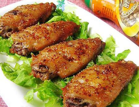 6、取出鸡翅,最后再洒一点白胡椒粉即可。
