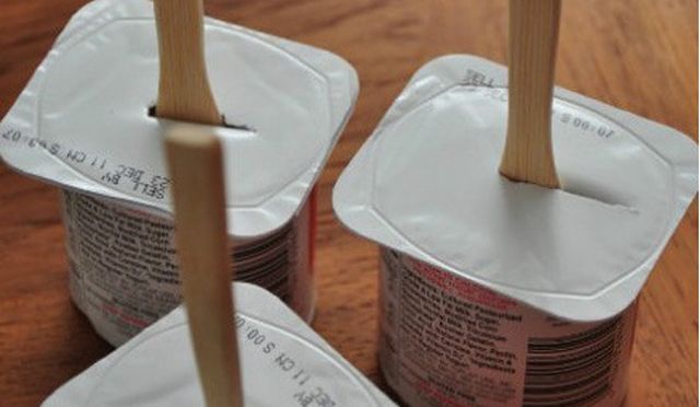 盒装酸奶顶部开小口,插入雪糕棒,放进冰箱冷冻室冻硬,吃的时候撕掉表面封口抽出来即可!