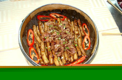 37.清水抄藕洁白。炒藕丝时,往往会变黑,如能边炒边加些清水,就会保持成品洁白。