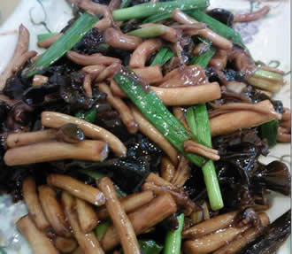 44、炒牛肉丝:切好,用盐、糖、酒、生粉(或鸡蛋)拌一下,加上生油泡腌,30分钟后再炒,鲜嫩可口;